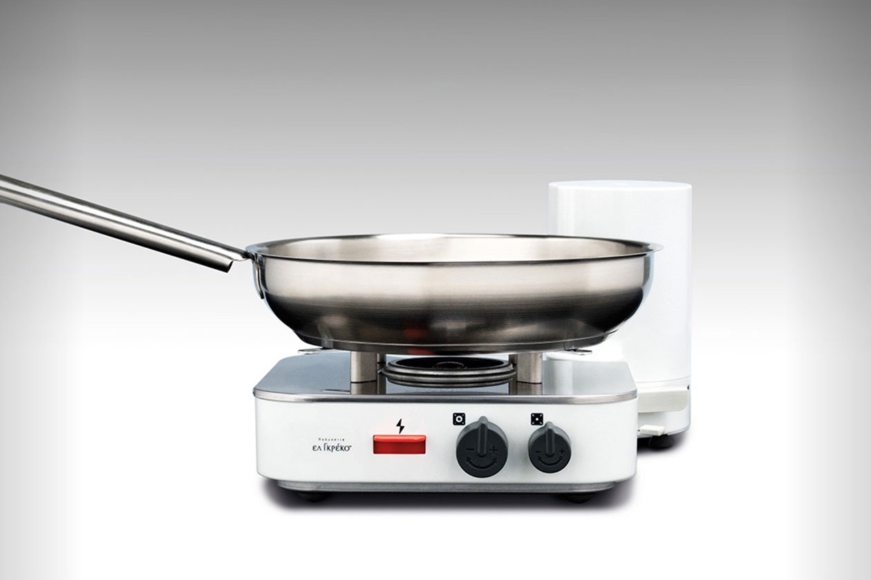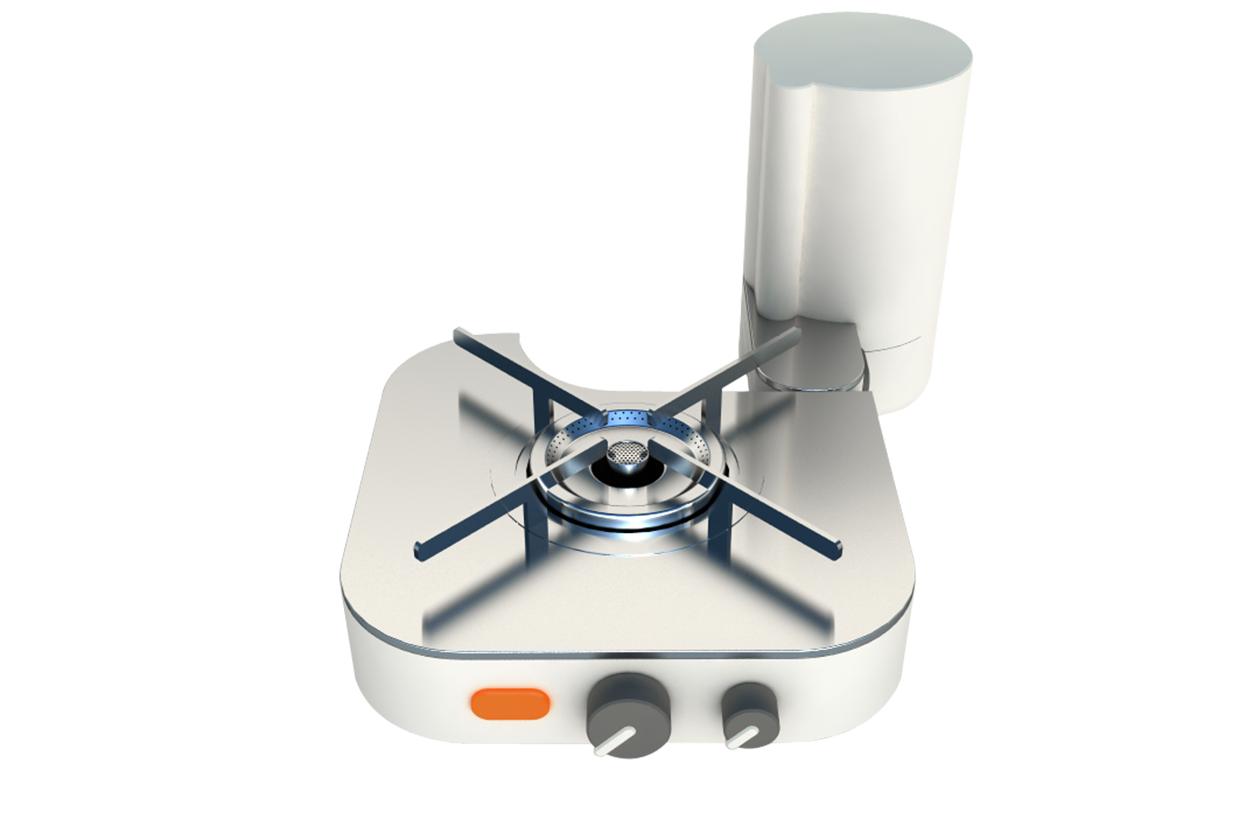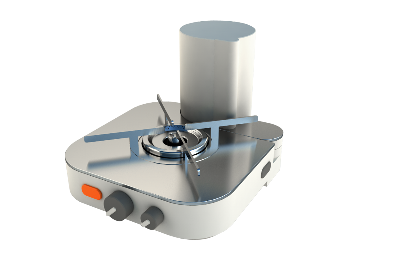 A desktop gas-powered cooking device with multiple functions designed for Resoul-Campingaz, integrating advanced features and collapsibility for minimum space requirements.